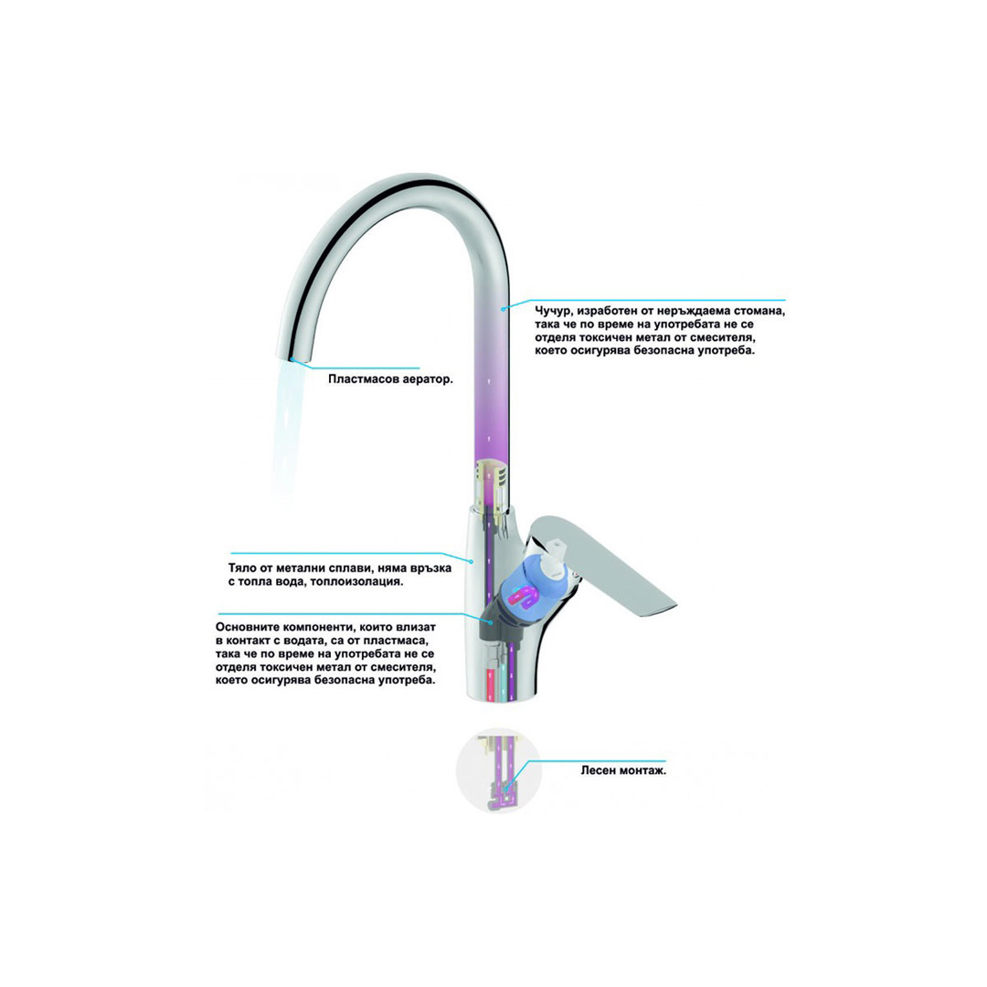 Смесител за кухненска мивка/умивалник ICF 7727198 7313, серия ДАНИСТА LEAD FREE, изработен от метални сплави.