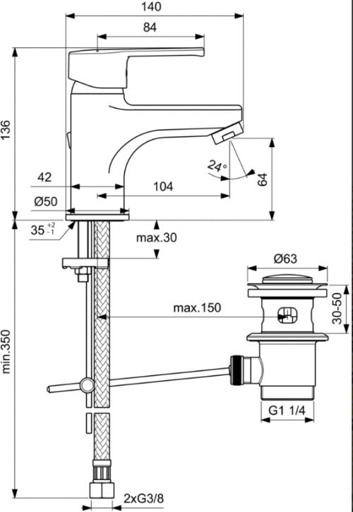 Смесител стоящ за умивалник с пластмасов изпразнител Видима В1928АА 74.40 € /БР (145.51 лв.)