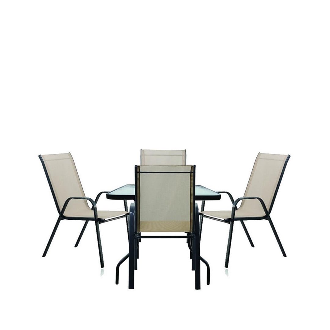 Градински стол изработен от от стомана и текстилен. Тази градинска мебел е с изчистен дизайн – подходящ за градини, тераси и заведения на открито.