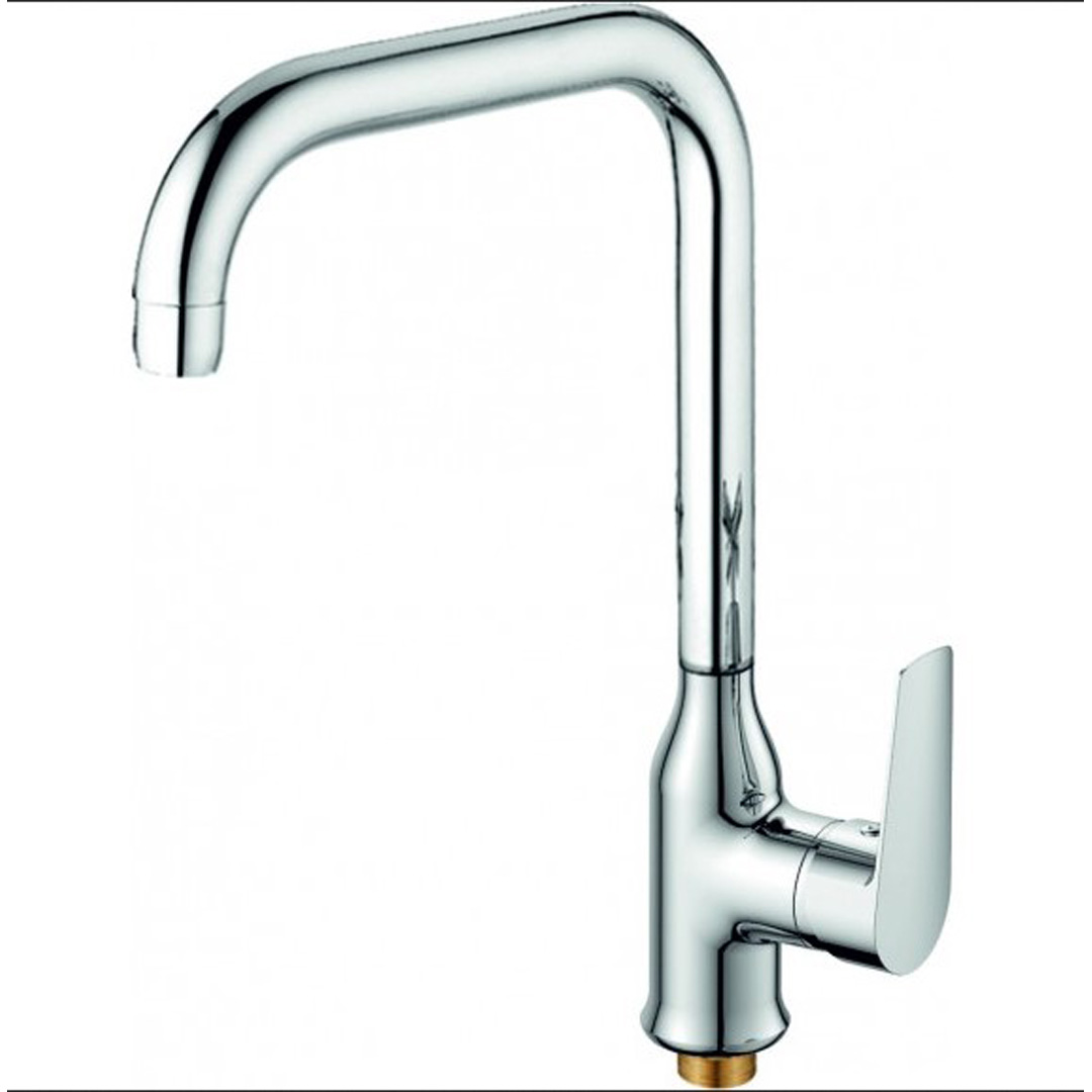 Месингов смесител с керамичен затварящ механизъм. Моделът е с ЕДНА ръкохватки – за кухненски умивалник с висок чучр . Предвиден за стоящ монтаж.