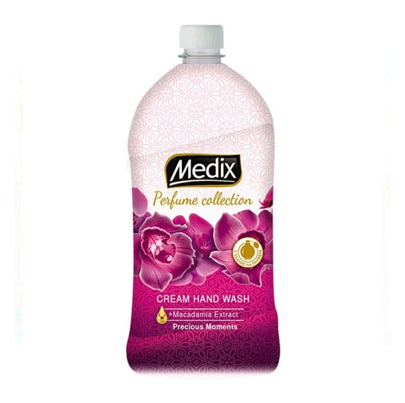 Кремообразен течен сапун за ръце Medix Precious Moments с изискан и дълготраен парфюмен аромат и екстракт от Макадамия. Меката му формула измива деликатно кожата на ръцете и е обогатена със специални хидратиращи агенти. Изключително изискан и завладяващ аромат, вдъхновен от фината парфюмерия. Богат и елегантен, в парфюма се преплитат плодови нотки, нежен жасмин, топла ванилия и загадъчен мускус.