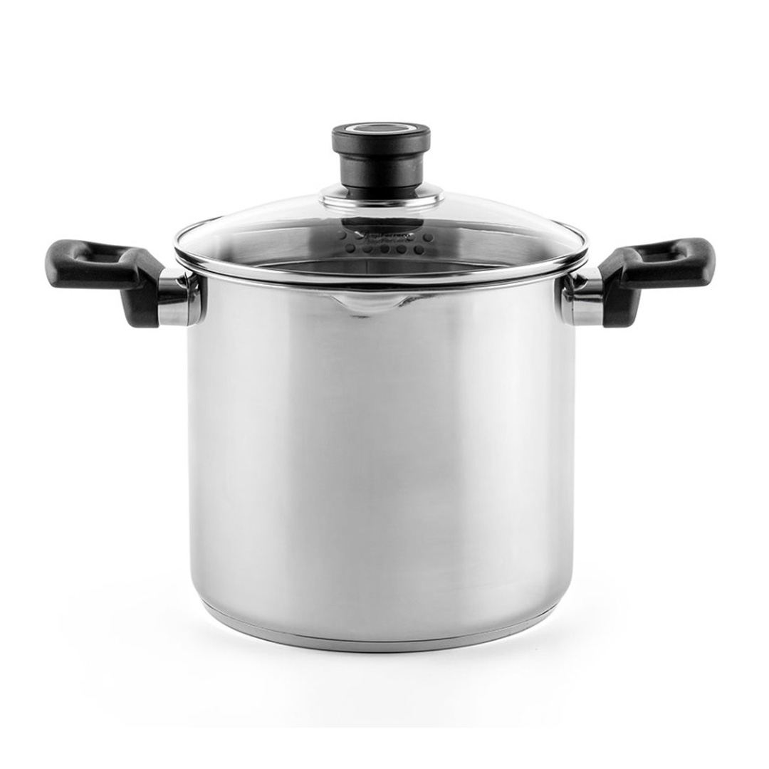 Висококачествена неръждаема стомана 18/10 Дебелина на стената 0.5mm Ергономични и удобни дръжки Дъно 2мм Алуминий Подходяща за всички котлони, включителни индукционни Подходящи за съдомиялна машина