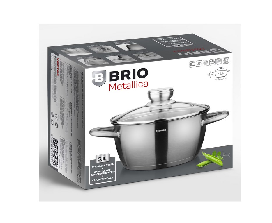 Тенджера с капак Brio Metallica, мерителна скала, мат, Ø24х12см, 5.1л / 105145