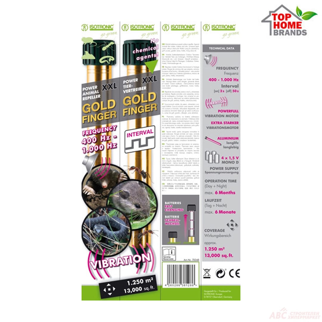 Isotronic GOLD FINGER Мобилен уред „Златен Пръст“ с ултразвук срещу къртици, мишки, змии и мравки, за 1250 кв.м. Супер мощно оръжие и истинско ефективно средство срещу къртици, сляпо куче, мишки и змии на откритите участъци, в градината и около дома. Гаранционен срок 24 месеца!