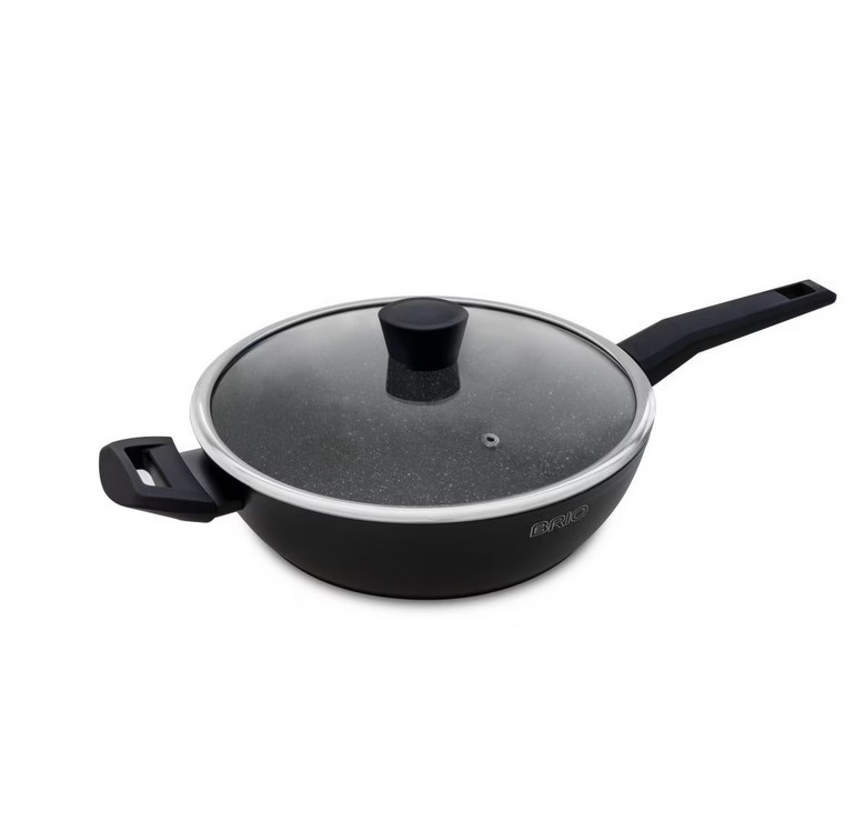 Тиган BRIO Black Stone, 28см с две дръжки и капак, индукционен
