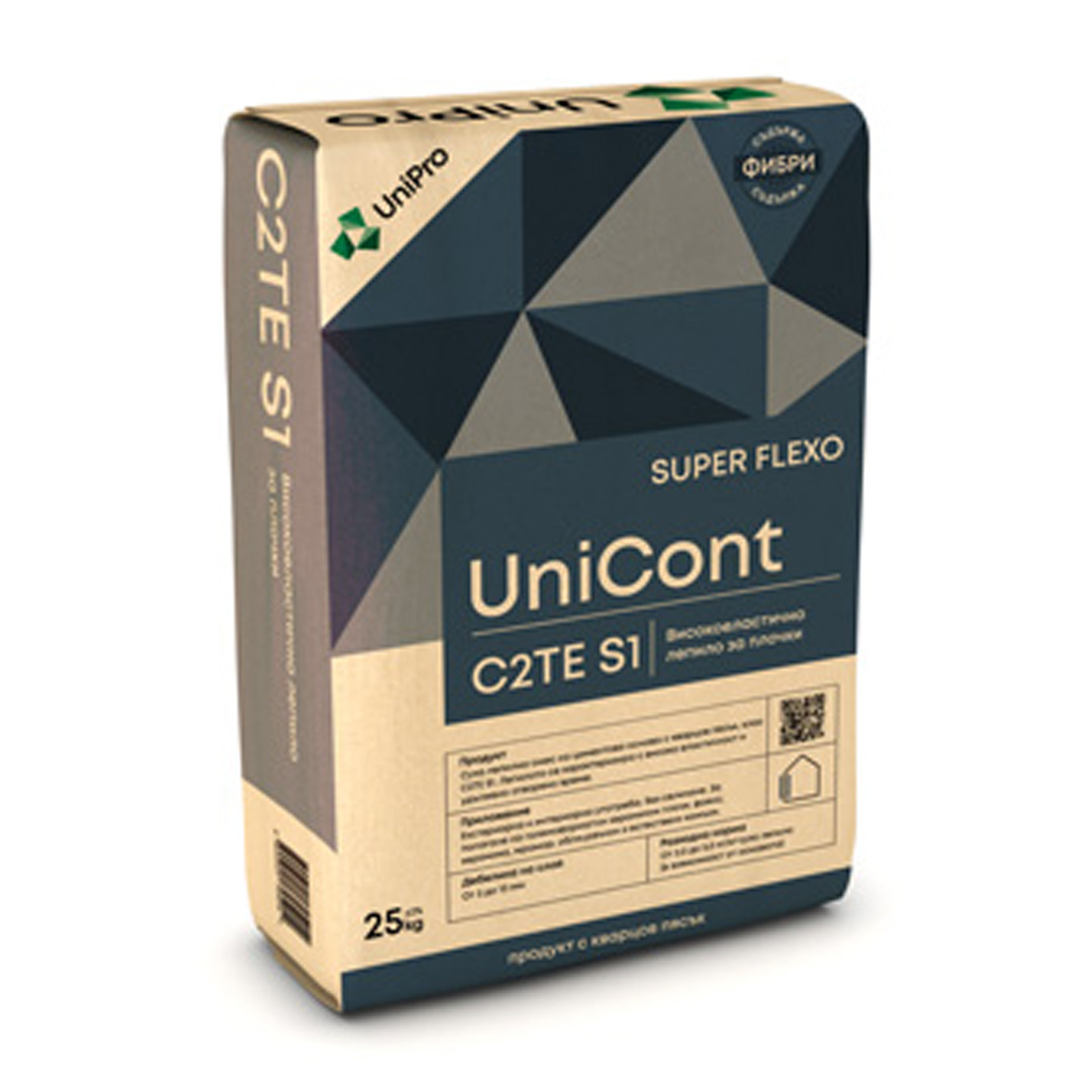 УНИКАЛПРОЕКТ УНИКОНТ C2TE S1 SUPER FLEXO ВИСОКОЕЛАСТИЧНО ЛЕПИЛО ЗА ПЛОЧКИ 25 КГ 10300010