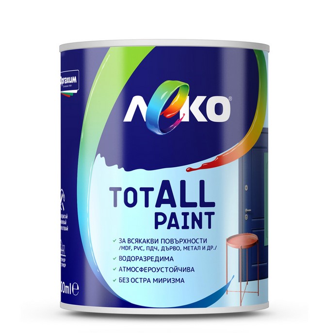 Универсална боя LEKO TотALL, за дърво, метал и PVC, 0.6 л