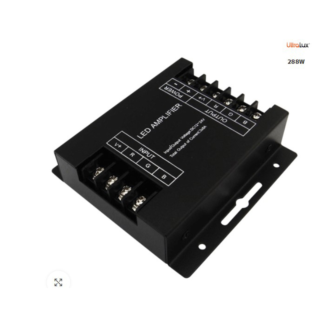 Усилвател за RGB LED лента UltraLux RGBAMP24A, 24A, 12-24V DC, 288W