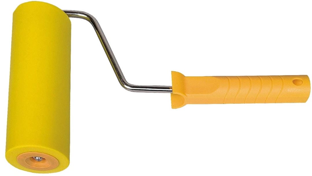 Гумена притискаща ролка HARDY 25 см – 0610-456525 с удобна пластмасова дръжка Standart се използва в интериорната декорация за равномерно изглаждане на залепени на стената тапети, премахване на въздушни мехурчета във фуги и ъгли, за лепене със самозалепващо фолио и други тънки материали , за равномерно притискане и разпределение на лепилото, осигурява нежно навиване на платното към повърхността, ускорява процеса на залепване, улеснява и намалява времето за работа. Предотвратява появата на въздушни мехурчета след изсъхване на тапета.
