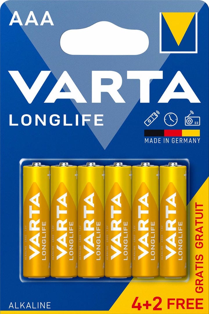 Алкални батерии Varta Longlife AAA LR03 4+2 броя
