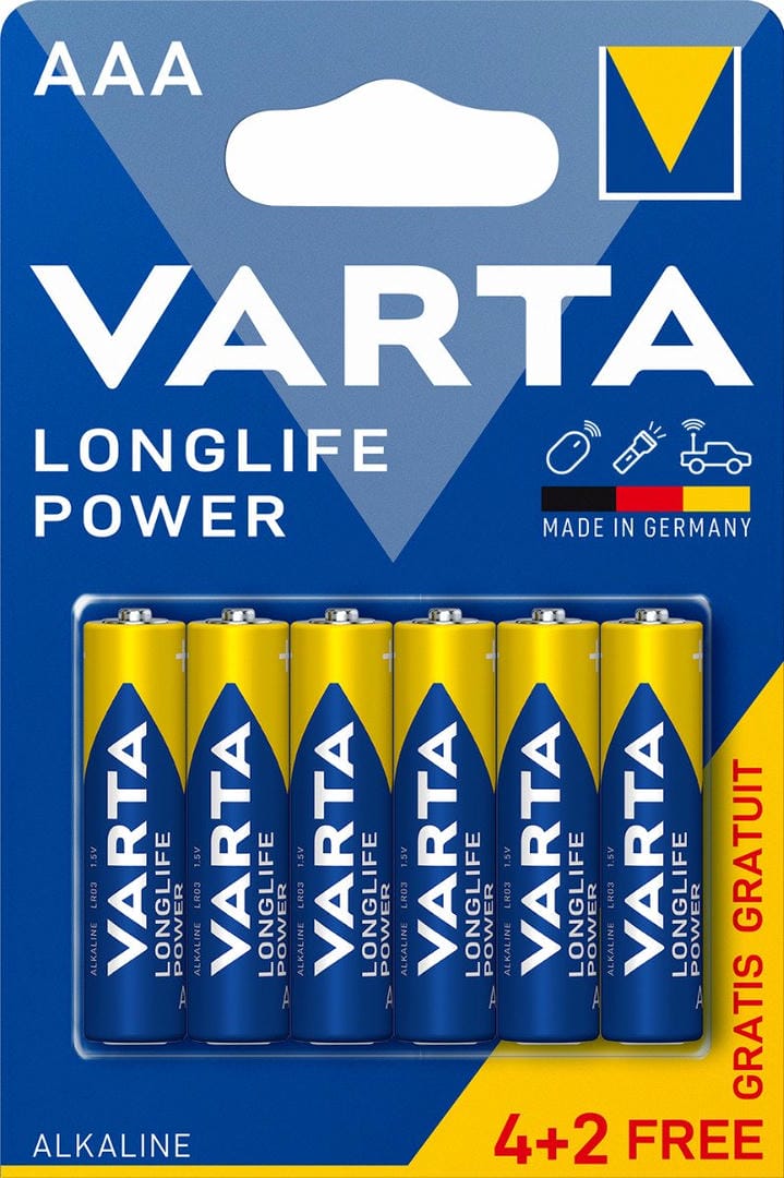 VARTA LONGLIFE Power – Най-мощната VARTA батерия. Разработена специално за използване в енергоемки устройства, компютърно оборудване или фенерчета, VARTA LONGLIFE Power предлага мощна енергия,