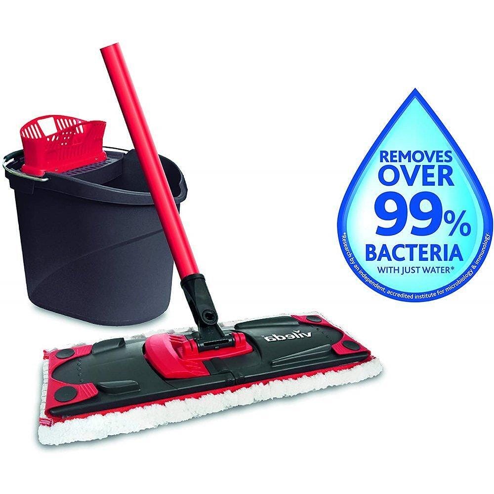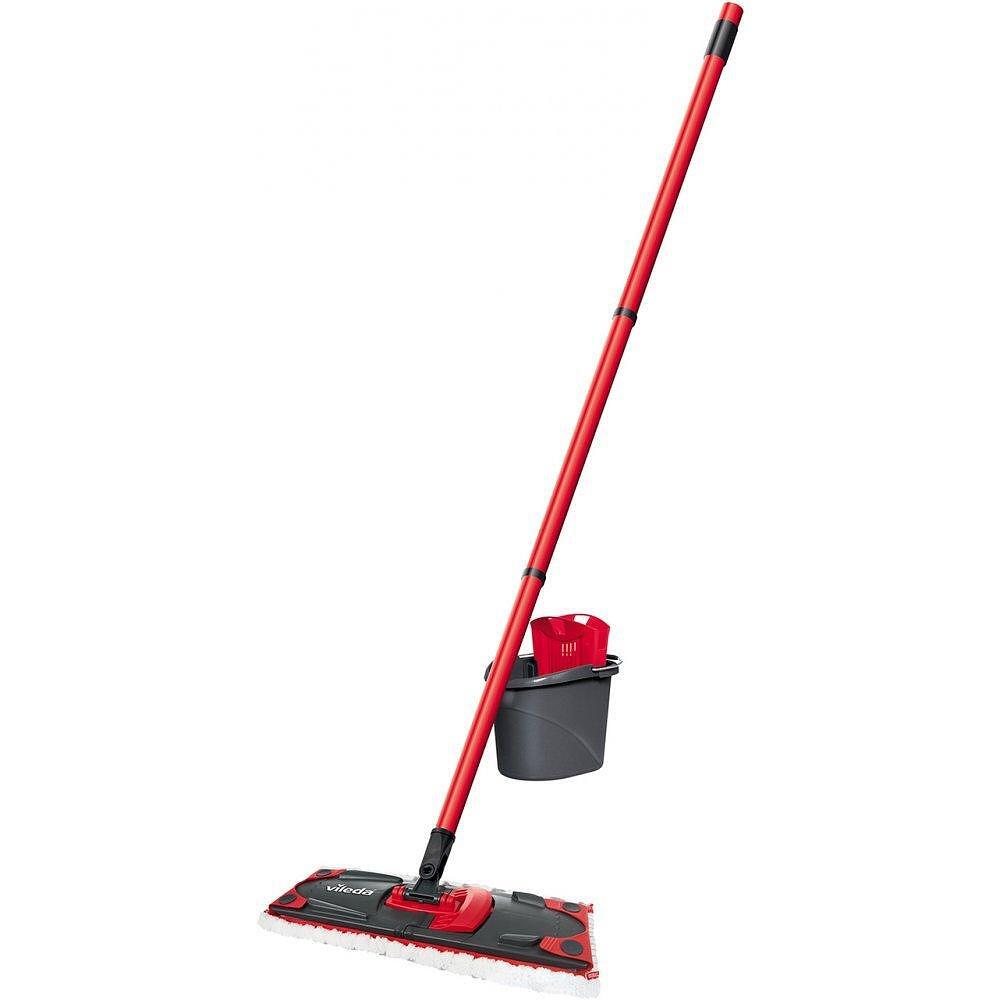 Kомплектът Vileda Ultramax Box е подходящ за почистване за всякакъв вид подови настилки – паркет, плочки, ламинат и други. Телескопичната дръжка и въртящата се на 360° глава улесняват почистването дори на най-труднодостъпни места. Усилените Power зони на пластмасовата рамка увеличават натиска и помагат за премахването на замърсяванията. При пране и изтискване на кърпата не се налага да се пипа с ръка, благодарение на специалната кофа.