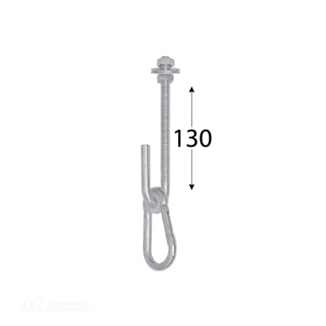 MHB окачвач за люлка с карабина за обли и квадратни врати с подвижна карабина. Размер 130/10 мм. Товароносимост 70 кг.